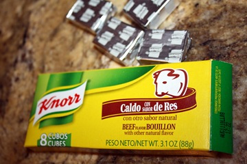 Crush 2 cubes of beef bullion cubes in your fingers and sprinkle over rolaudin and water.
